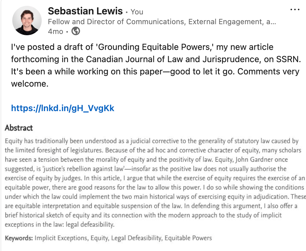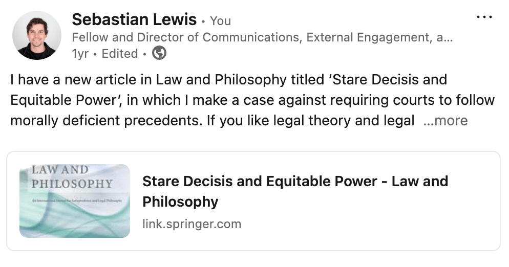 “Stare Decisis and Equitable Power” Published in Law and Philosophy