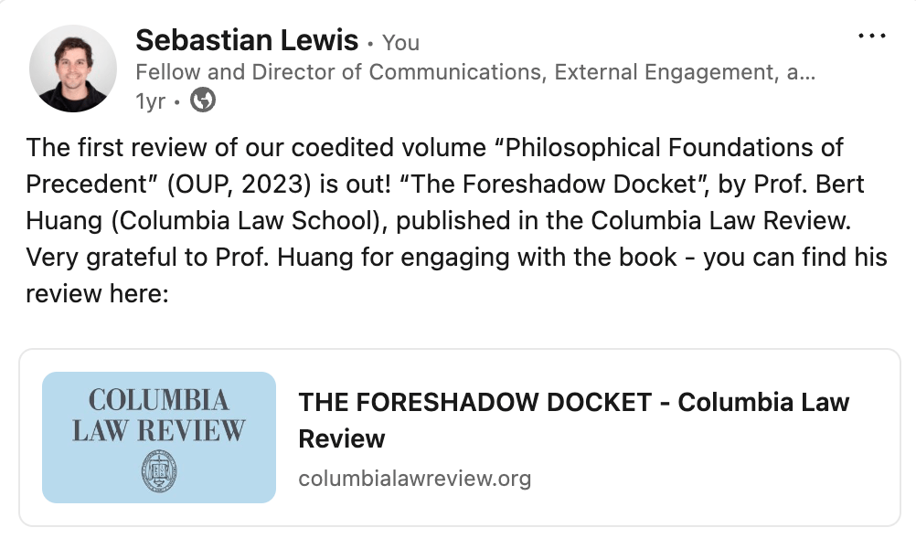 First Review of Philosophical Foundations of Precedent by Prof. Bert Huang (Columbia)